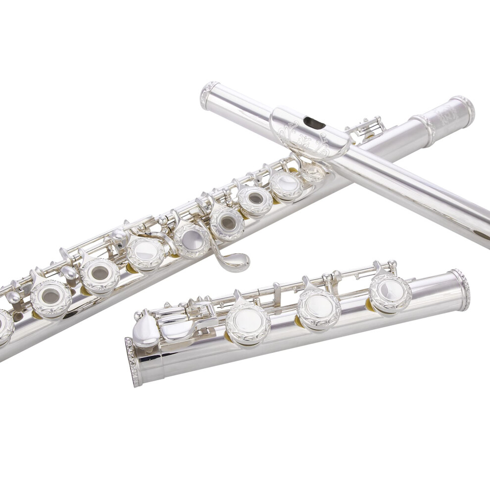 Glory HAND-ENGRAVED SILVER PLATED HIGH GRADE FLUTE 17 Hole OPEN/CLOSED C Flute With Case Tuning Rod and Cloth and Gloves HIGH GRADE HAND ENGRAVED
