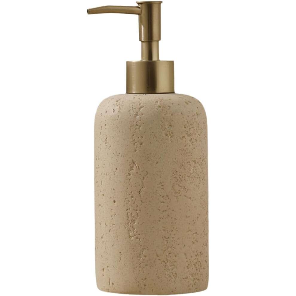 Hand Soap Dispenser Refillable Stone Soap Dispenser Beige Travertine Liquid Shampoo Bottles Marble Bathroom Kitchen Decor