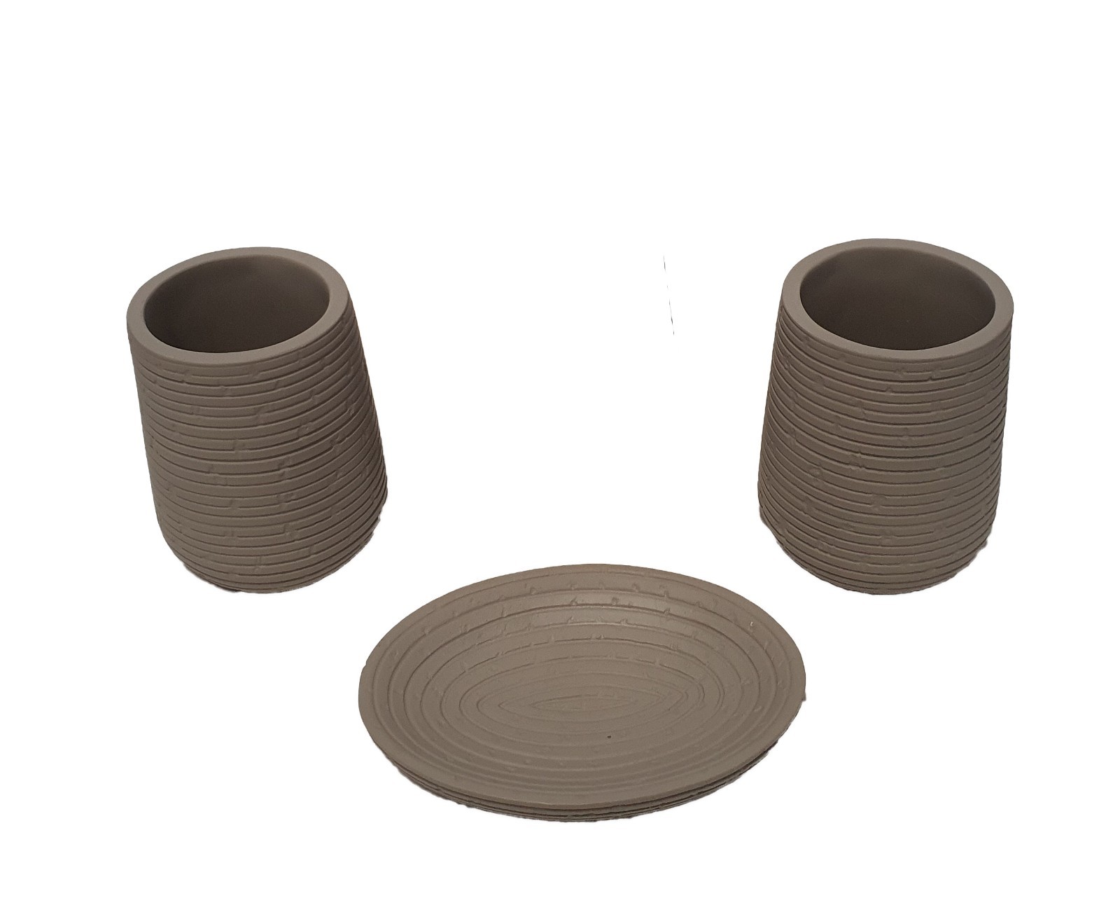 kela 390240 Bathroom Set 3-Piece 1 Soap Dispenser and 2 Beakers Stone Effect Cement Beige Roda