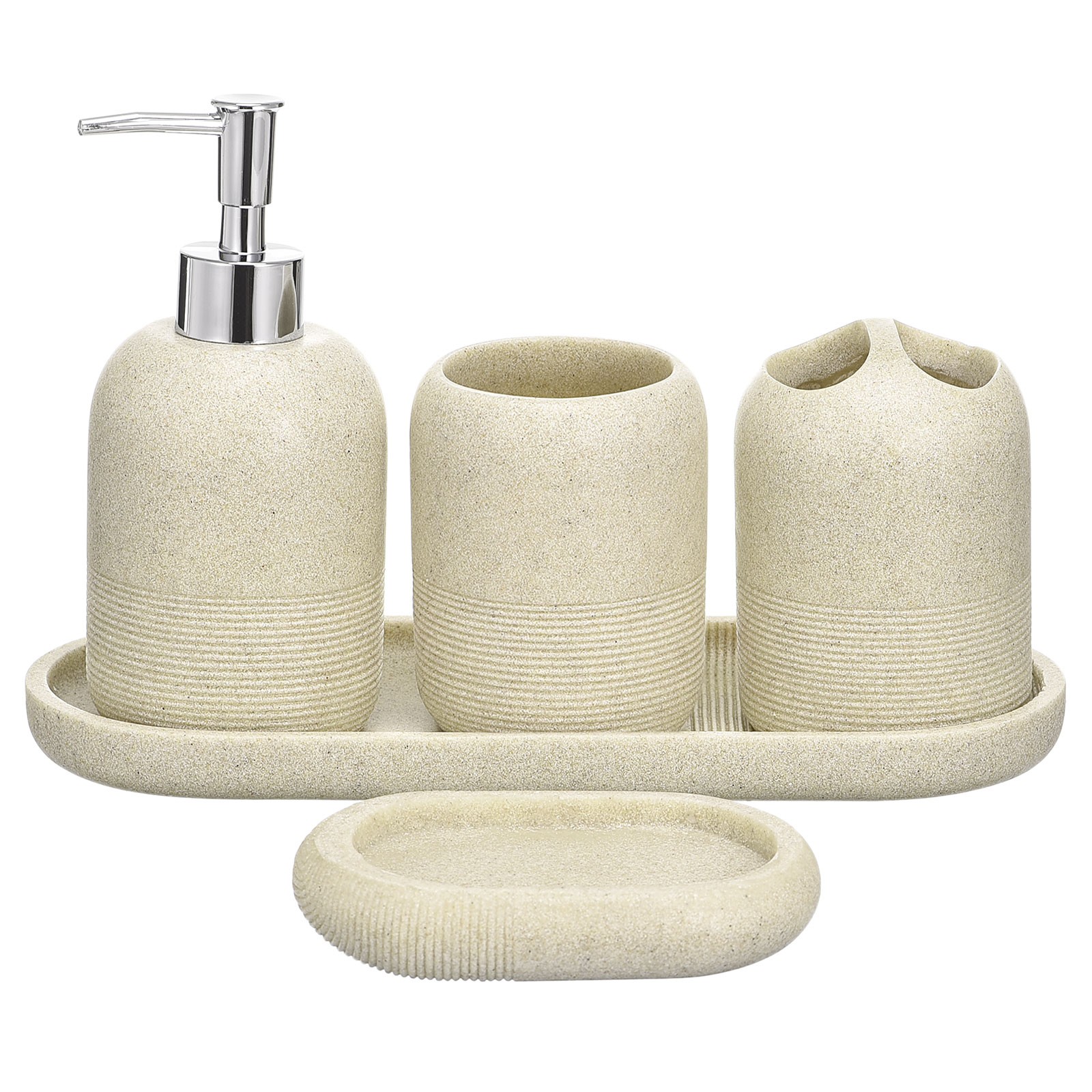 5pc Bathroom Accessories Set Stone Toothbrush Tumbler Holder Soap Dish Dispenser
