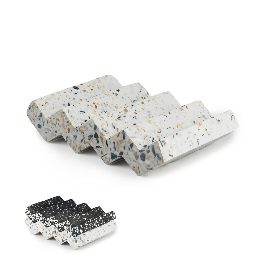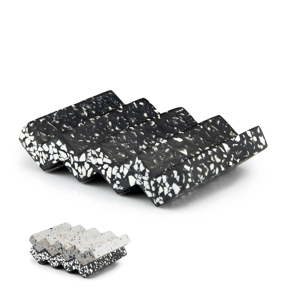 Tapeera Zig Zag Jesmonite Terrazzo Stone Soap Dish for Bathroom Sink - Concrete Soap Saver - Self Draining.