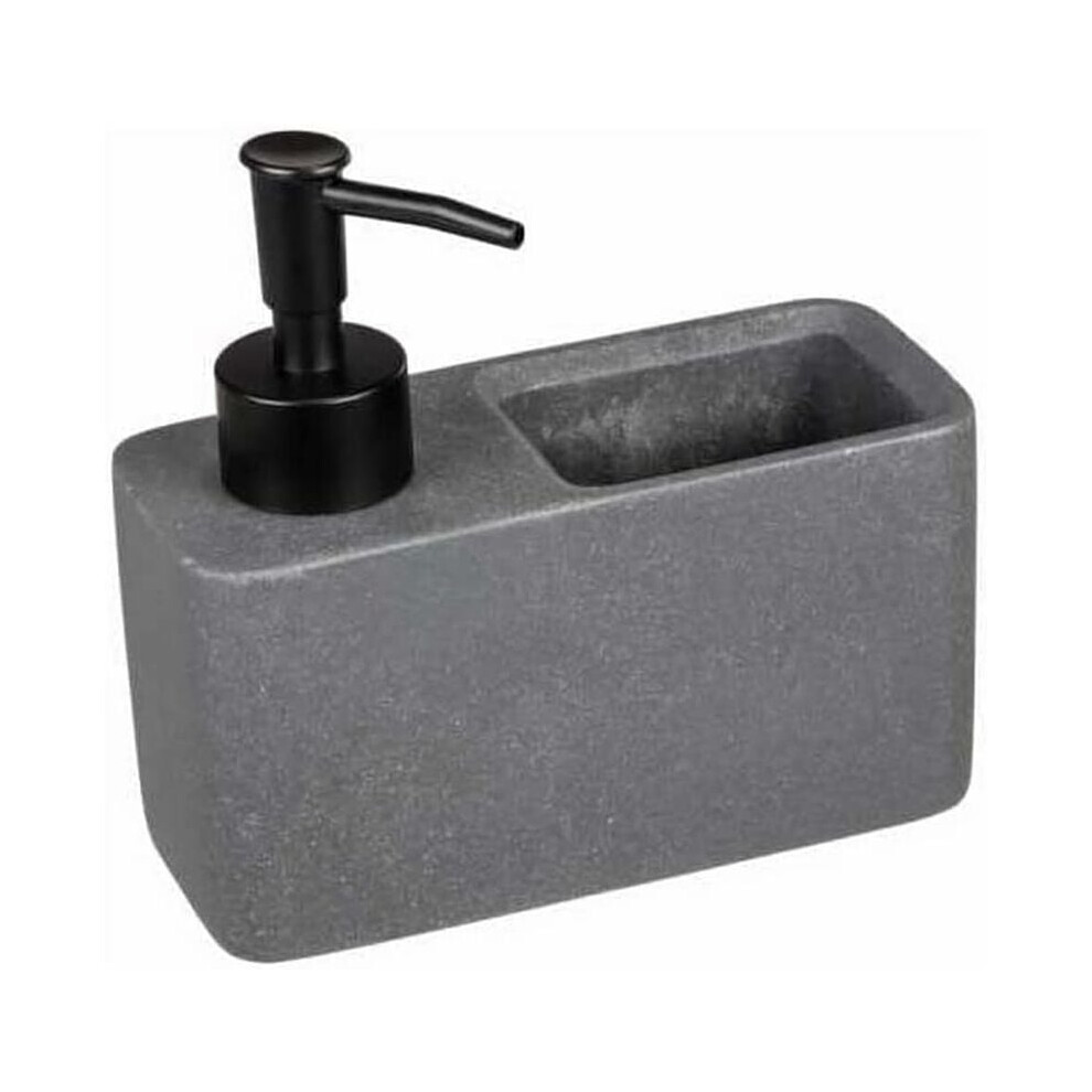 Dual Soap Pump Soap Dispenser, Contemporary Stone Look With Space-saving Compartment For Dishwashing Sponges, Natural Stone Design For Hotel Collectio