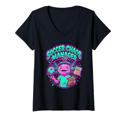Women's Funny Axolotl Coach Parent T-Shirt Soccer Chaos Manager Mom V-Neck T-Shirt