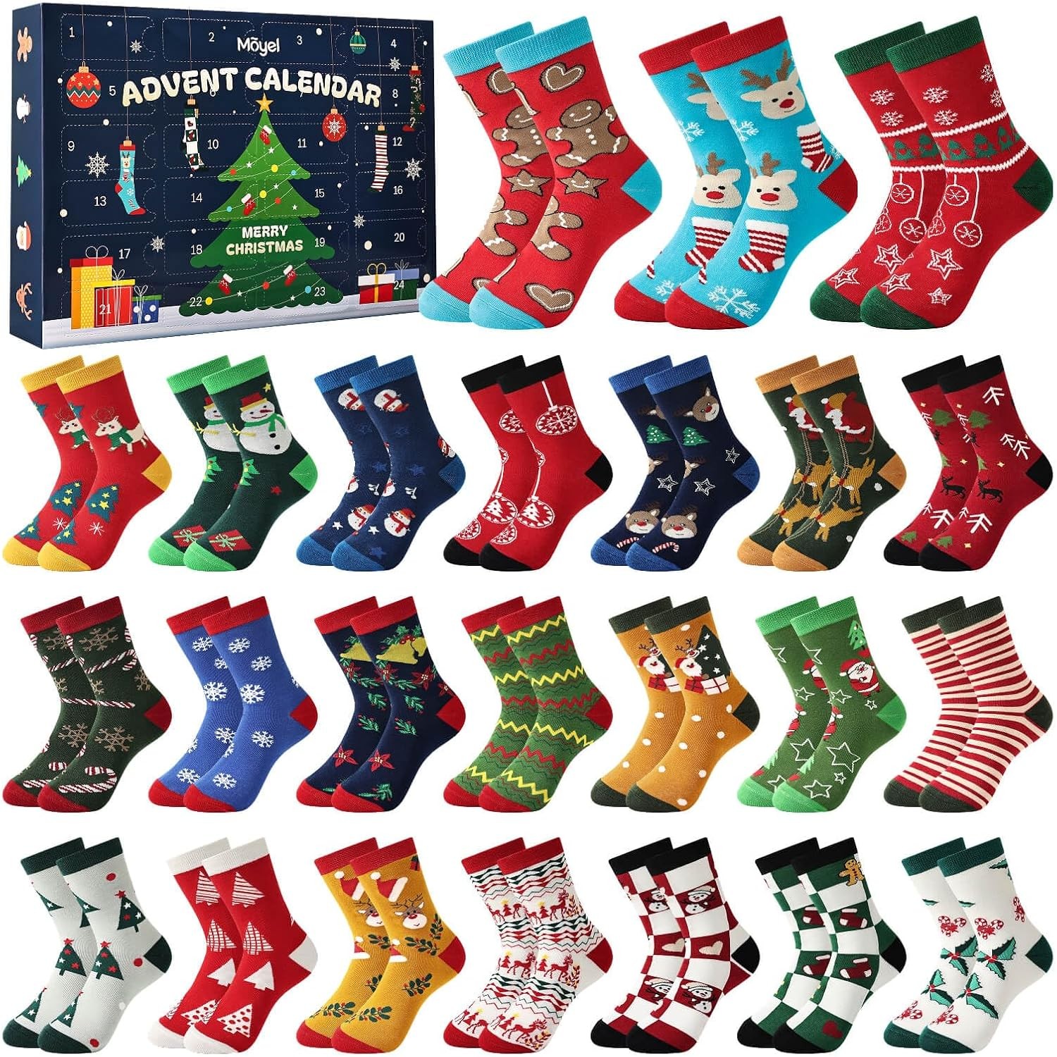 Moyel Advent Calendar 2025 Kids Socks 8-12 Years Funny 24 Days of Christmas Cal