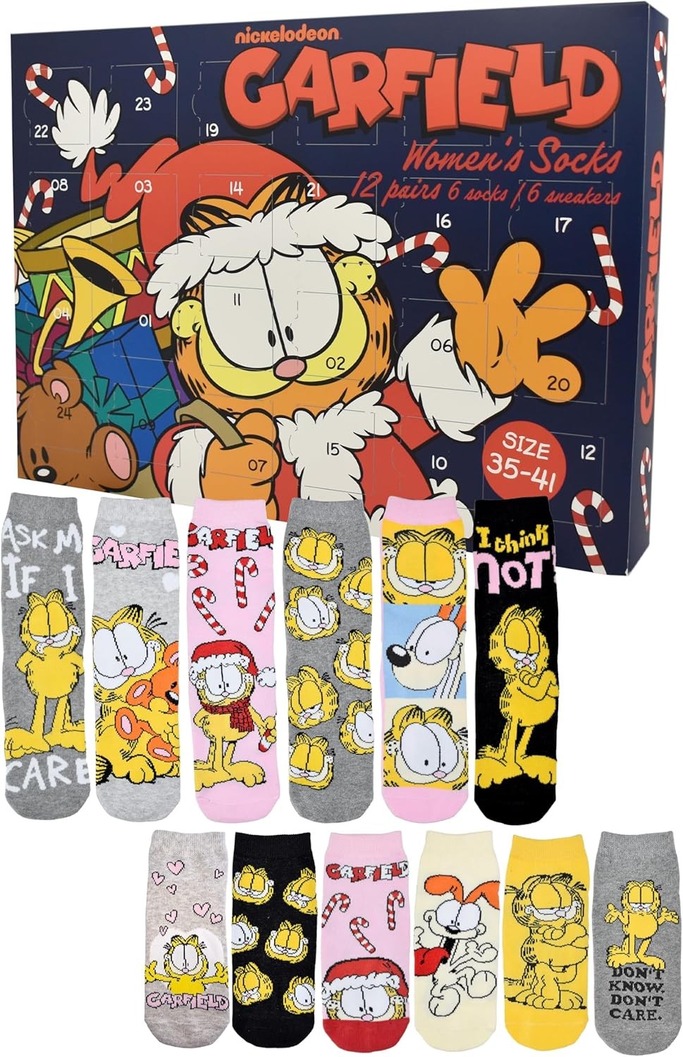 United Labels Garfield Advent Calendar with 12 Pairs of Socks for Women, Size 3