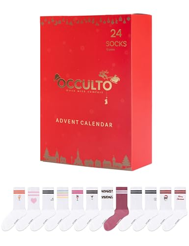 Occulto Men & Women Socks Advent Calendar 12 pairs, Christmas Socks Women's Red 3-5