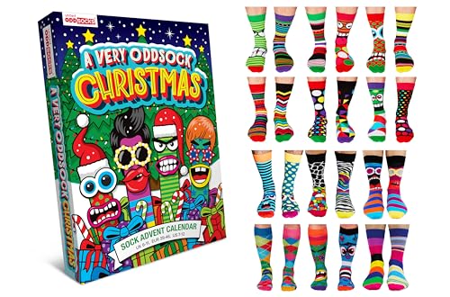 United Oddsocks A Very Oddsock Christmas Sock Advent Calendar, 24 Colourful Men’s Odd Socks, UK 6-11 EUR 39-46 US 7-12, Festive Advent Calendar Sock Set, Mix & Match for 276 Combos, Cotton Rich & Fun