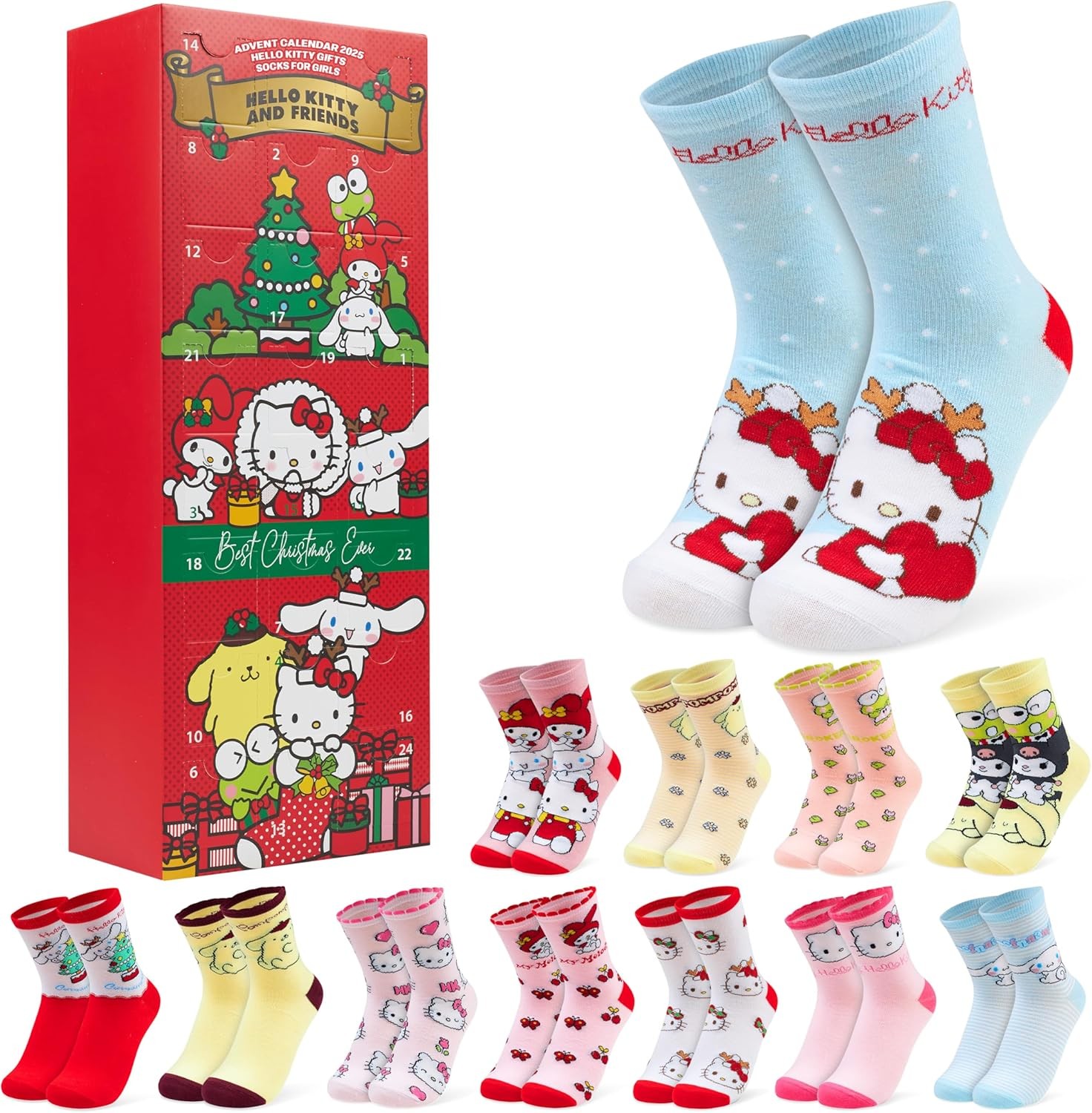 Hello Kitty Sanrio Socks Advent Calendar 2025 Girls Teens Women Size 1-6.5, 24