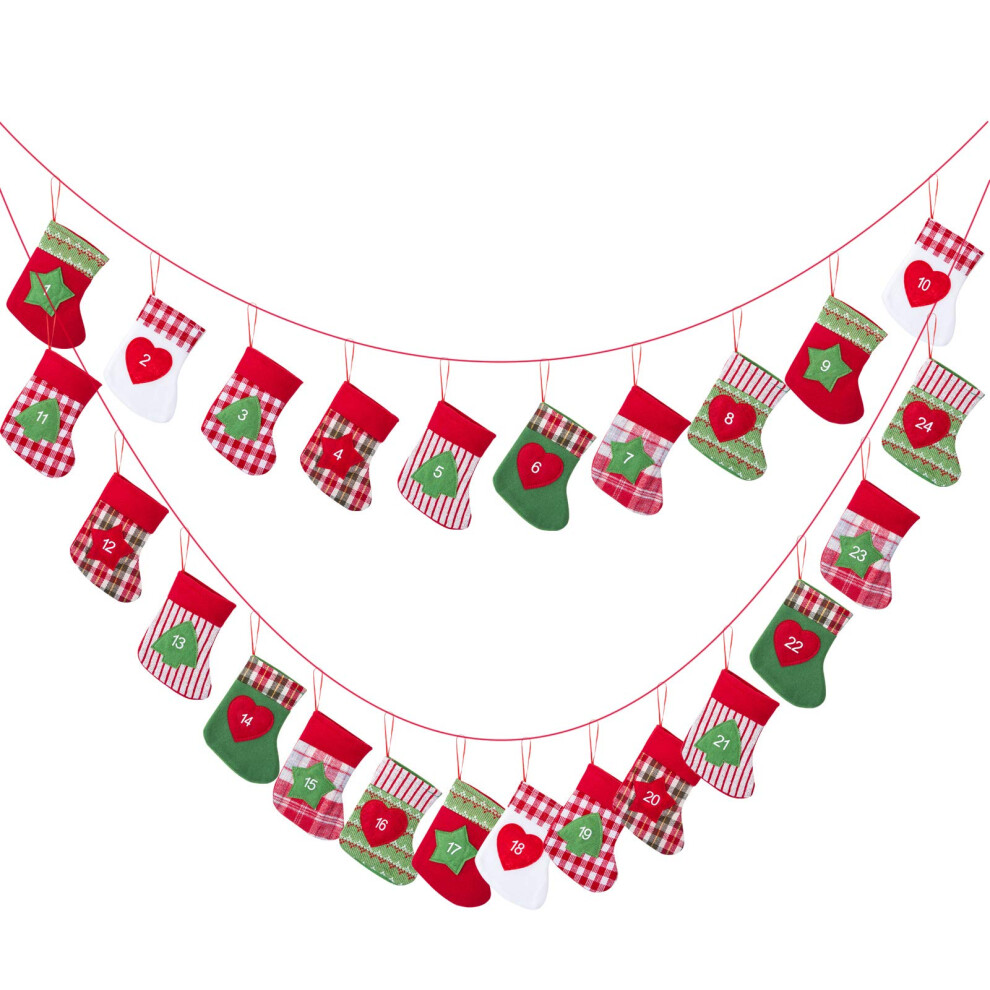 Kesoto Fillable Advent Calendar Garland 24 Stocking Socks Countdown to Christmas Advent Garland to Fill for Kids Christmas Holiday Decorati