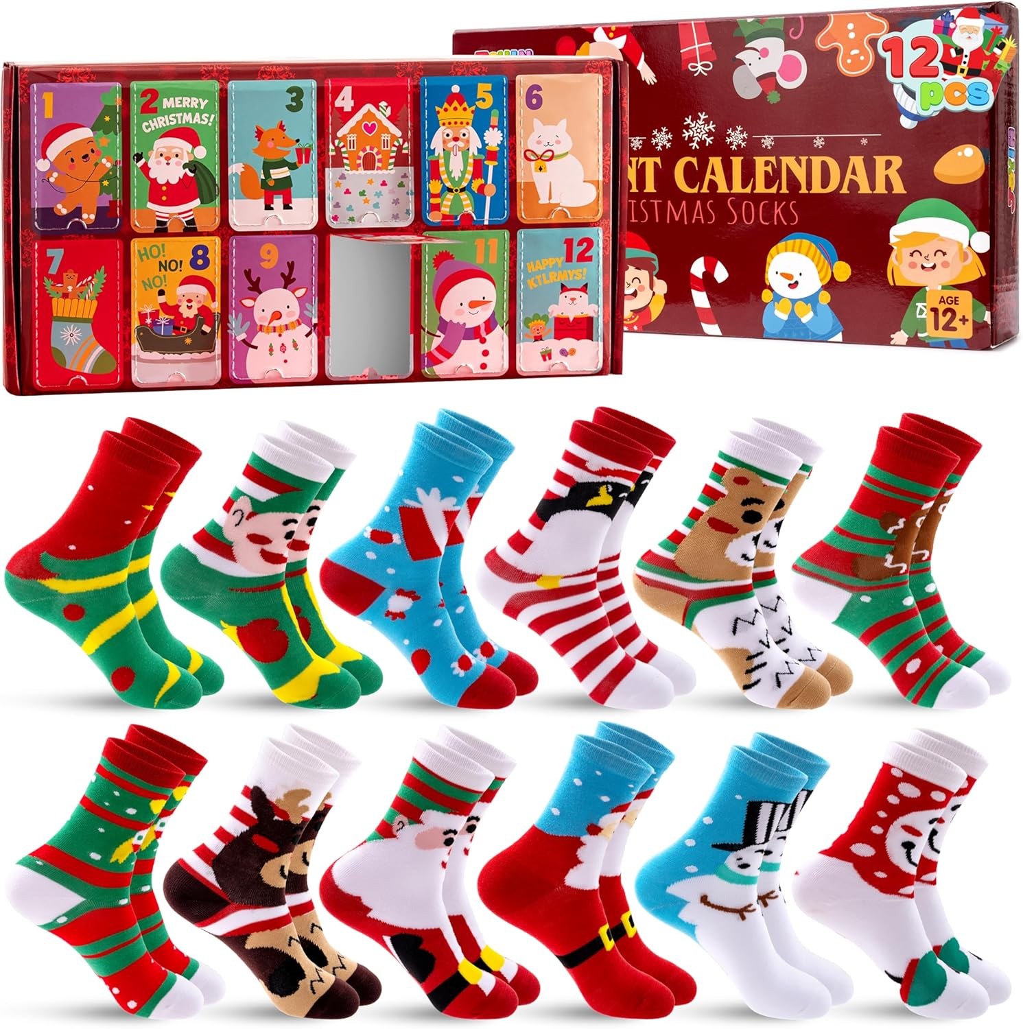 Jeasona Sock Advent Calendar 2025 Kids Kinder Christmas Advent Calendars for Teen Girls Boys Women Christmas Socks 4-7 Secret Santa Gifts for Children