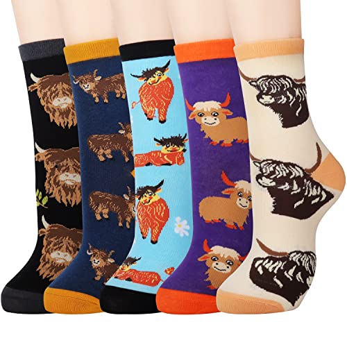 Jeasona 5 Pairs Highland Cow Advent Calendar 2025 Socks Women Cotton Cute Highland Cow Gifts for Women for Mothers’ Day Christmas Stocking Filler