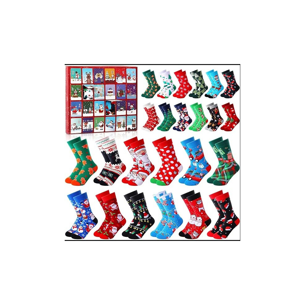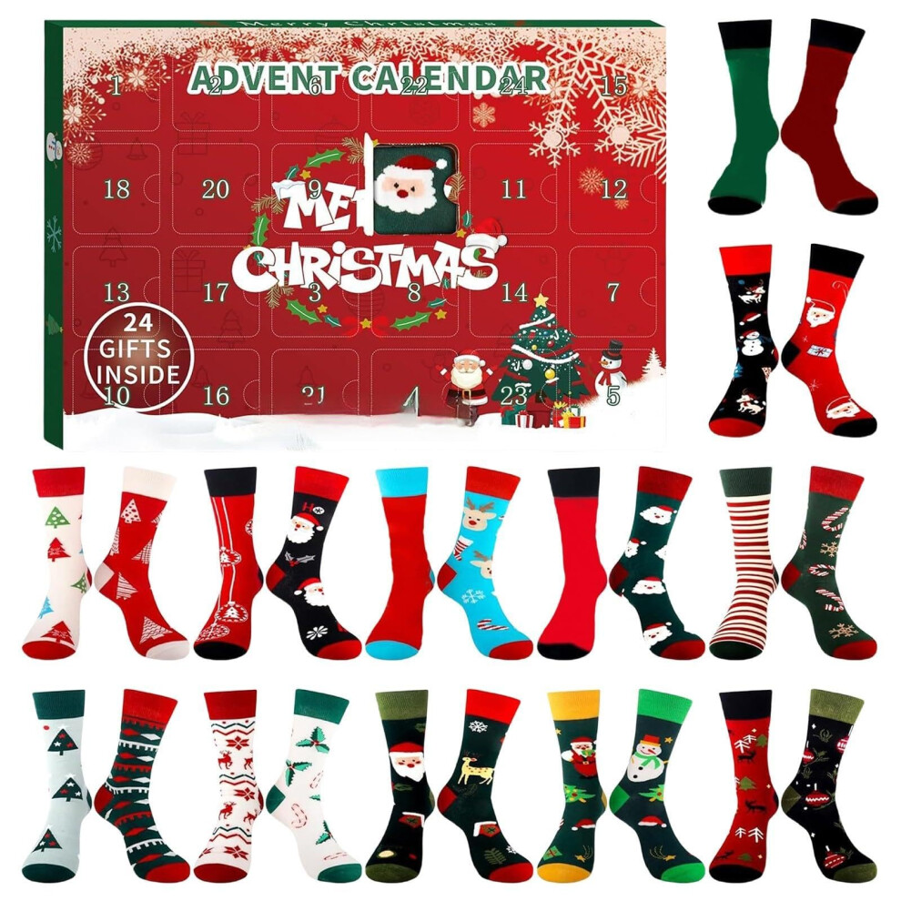 Christmas Socks Advent Calendar 24 Pairs Unisex Holiday Morning Surprises
