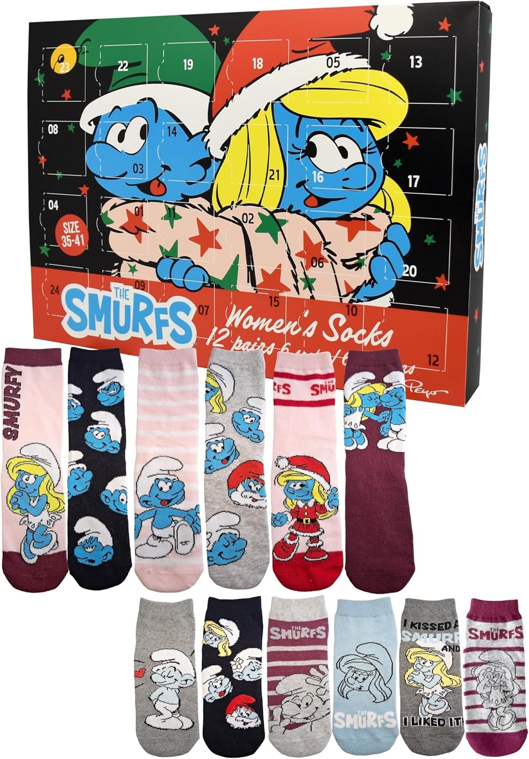 United Labels The Smurfs Advent Calendar with 12 Pairs of Socks for Women, Size