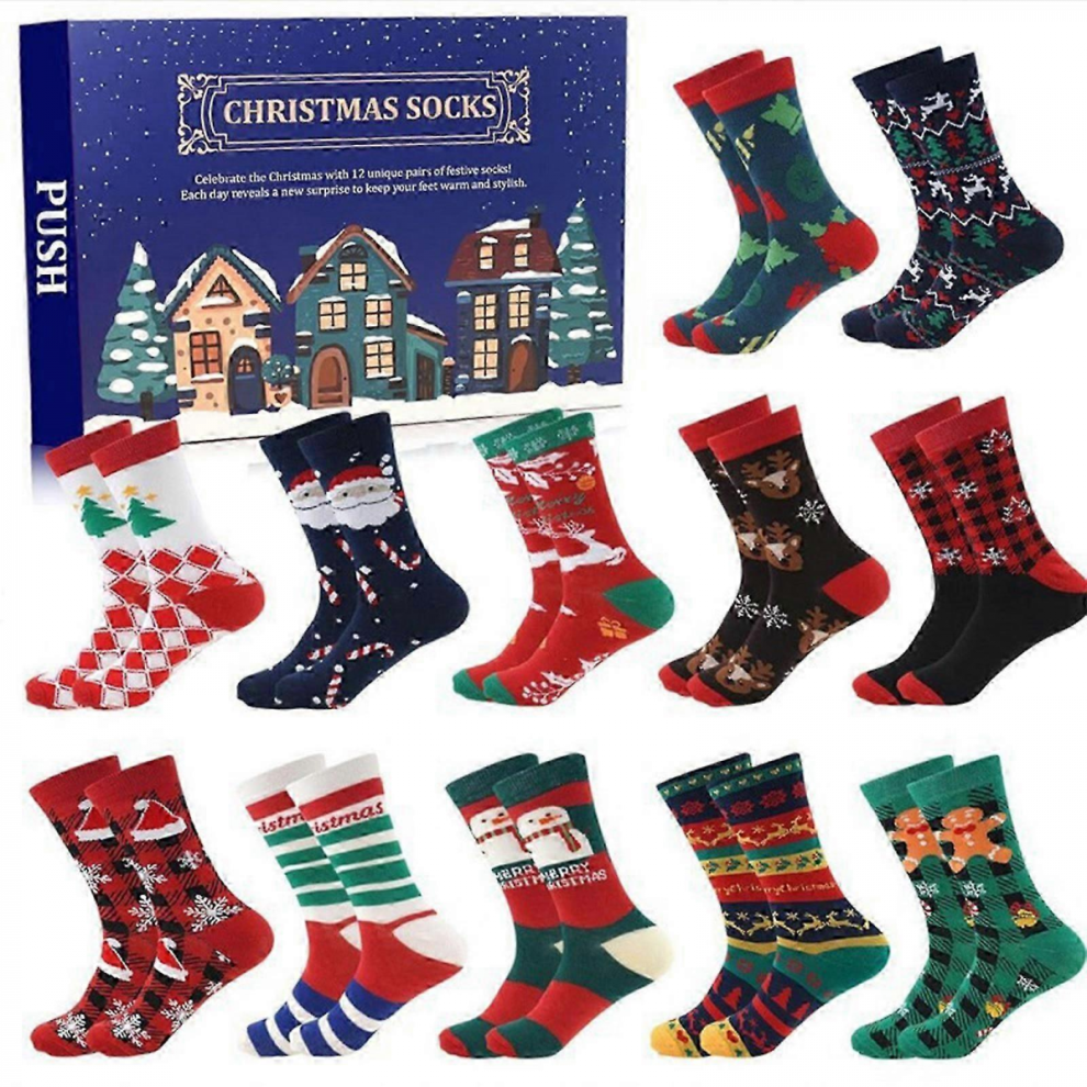 Christmas Socks Advent Calendar 24 Days Gift Set with 12 Pairs, Funny Holiday Countdown for Adults