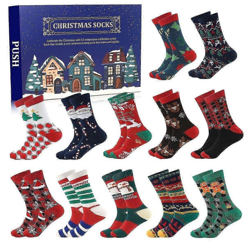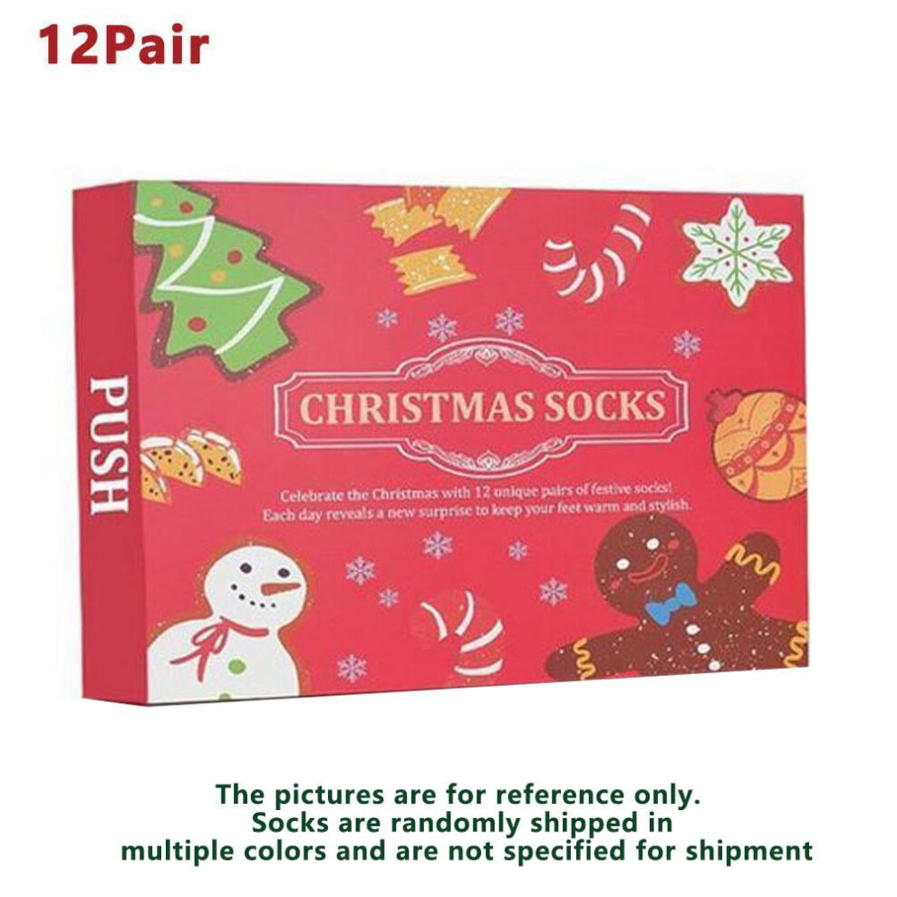 (Style B 12pcs) 12/24Pairs Christmas Stocking Advent Calendar 12/24 Days Of Socks 2024 Festive Holiday White Christmas Colorful Socks For Men