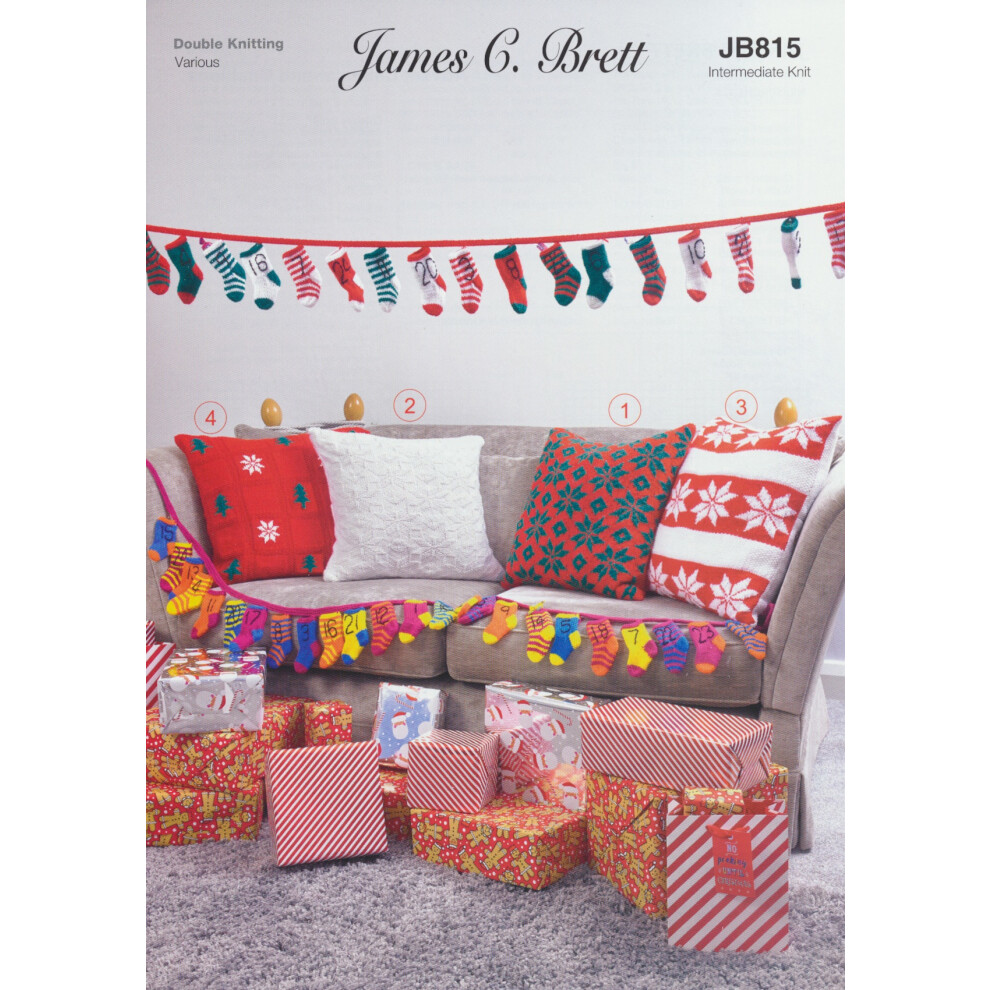 James Brett JB815 DK Knitting Pattern Advent Calendar Socks & Cushion Covers