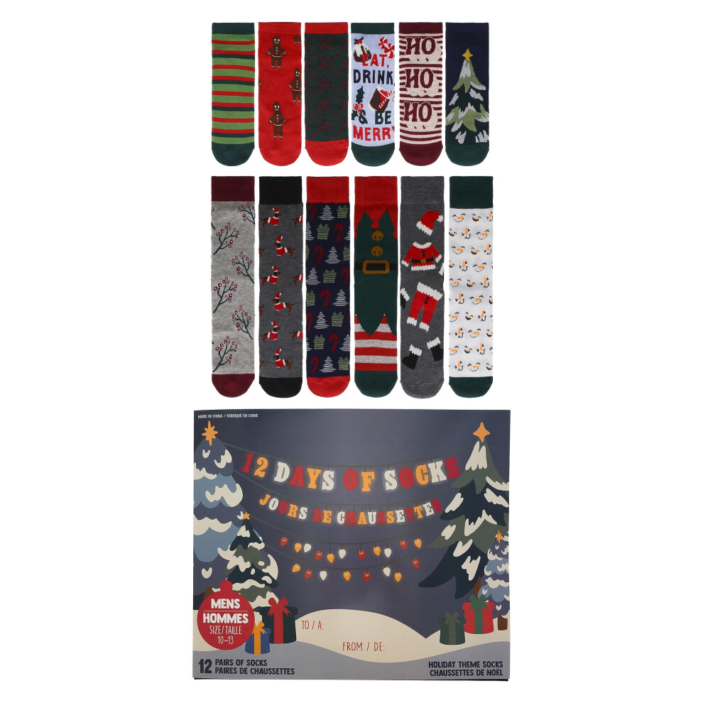 Gertex Mens Premium Christmas Holiday Sock Advent Calendar | 12 Days of Socks | Sock Size 10-13 | Includes 12 Crew Socks