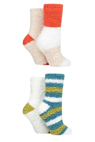 Elle Ladies Blissful Bed Socks - Fluffy and Cosy, Plain and Striped Warm Socks 4 Pair Pack Size 4-8 Orange Apple