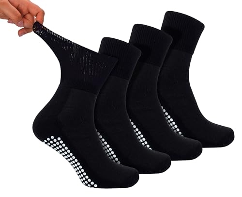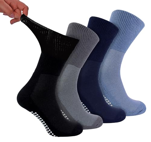 Dr.Socks 4 Pack Bamboo Diabetic Socks with Grips | Mens & Ladies | Extra Wide Slipper Socks for Swollen Feet & Legs (9-11, BNG)