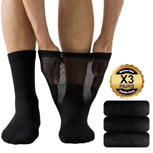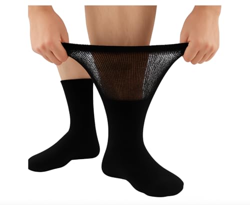 Niorasen Mens Extra Wide Loose Diabetic Socks, 3 Pairs Bamboo Socks for Swollen Feet & Legs, Elastic Soft Top Breathable Seamless