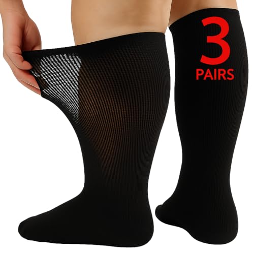 3 Pairs of Extra Wide Memory Cushioned Moisture Socks for Swollen Feet Super Wide Diabetic Edema, Bariatric, Hospital Socks for Men, Men's Size 11-14 UK