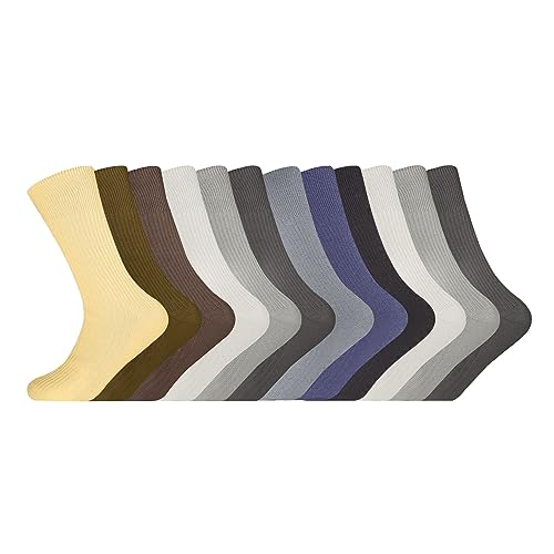 VELVETIO 12 Pair Mens Socks Fashion Mix Colour, Diabetic Non Elastic UK Size 6-11, EUR 39-45, 100% Cotton Breathable Soft Loose Top Socks for Swollen Feet & Legs