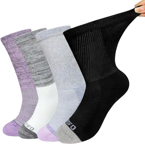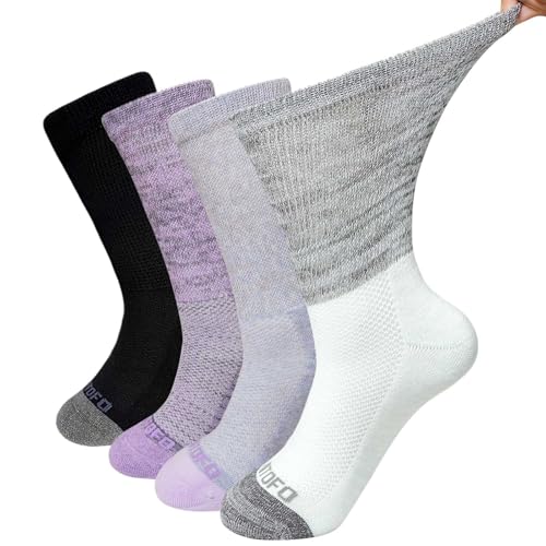 Jeasona 8 Pairs Bamboo Diabetic Socks Women 4-7 Multicolored Soft Top Crew Socks for Swollen Feet and Ankle Extra Wide Multipack