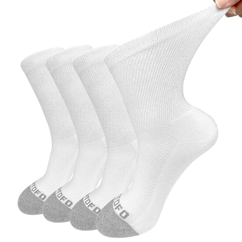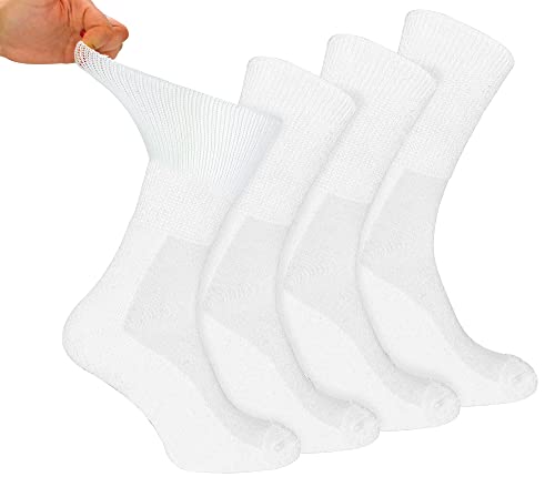 LOFIR Diabetic Socks for Men Women: Soft Extra Wide Top Sock for Ladies Non Elastic Loose Gentle Grip Cotton Socks Seamless Padded socks for Swollen Feet and Ankles White Size 6-8 4 Pairs