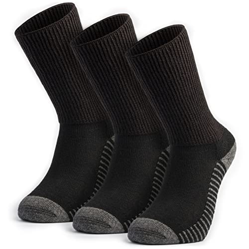 LOFIR Diabetic Socks for Men Women: Soft Extra Wide Top Sock Ladies Non Elastic Loose Gentle Grip Cotton Non Slip Socks for Swollen Feet Black 6-11 3 Pairs