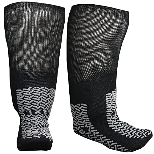 Dr.Socks 4 Pack Bamboo Diabetic Knee High Socks with Grips | Mens & Ladies | Extra Wide Long Slipper Socks for Swollen Feet & Legs (12-14, Black)
