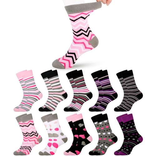 Jeasona 10 Pairs Diabetic Socks for Women 4-7 Ladies Soft Top Socks for Women Swollen Feet and Ankles
