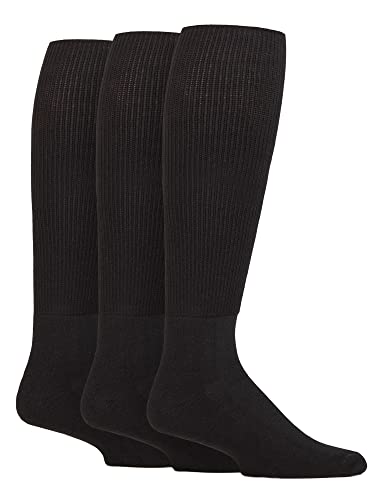 IOMI Diabetic 3pk Bamboo Non Elastic Socks - Long Wide Non-Binding Soft Top Socks for Swollen Feet (12-14, Black)