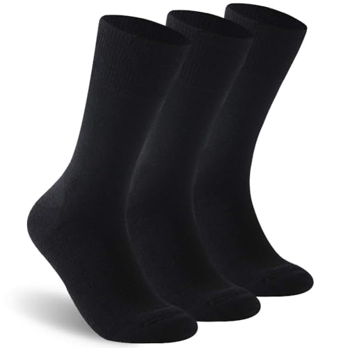 Facool Diabetic Socks for Men Women, Merino Wool Soft Non-Binding Top Circulatory Medical Socks for Diabetes, Circulation, Swollen Feet, Neuropathy, Edema, 3 Pairs Black Medium
