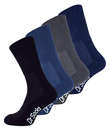 Dr.Socks 4 Pair Multipack Mens Bamboo Diabetic Socks Non Elastic Extra Wide Diabetic Socks for Swollen Feet (9-11, BNG)