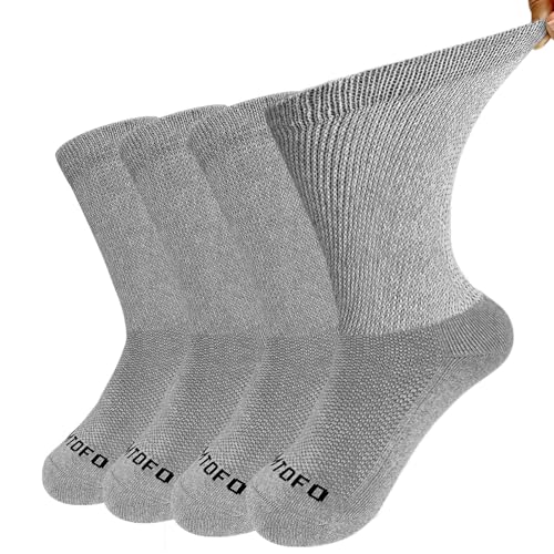 ZFSOCK Diabetic Socks for Men Soft Top Non Elastic Loose Fitting Seamless Socks Ladies Extra Wide Non-Binding Gentle Grip Mid-Calf Cushioned Socks for Swollen Feet Legs 9-12 Grey 4 Pairs