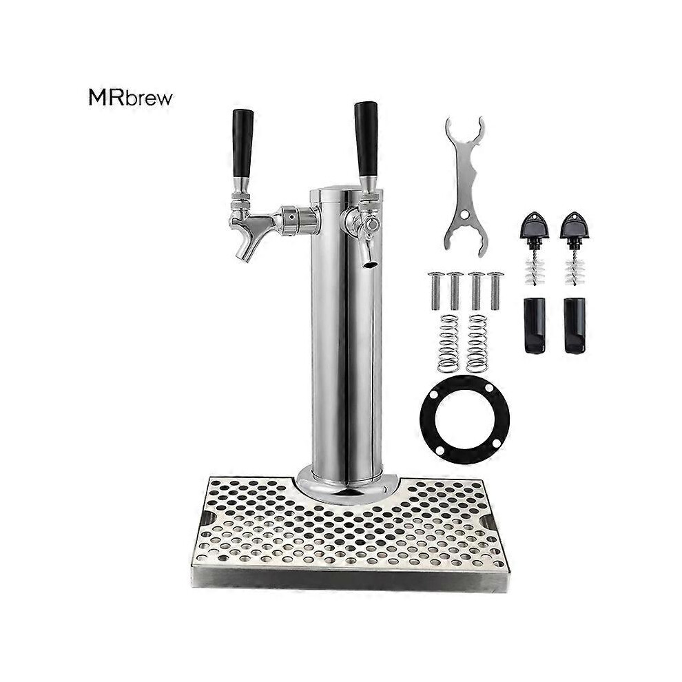 (As show, One size) Stainless Steel Beer Drip Tray & Double Tap Beer Tower, Beer /Wine/Soda Water Dispenser Set,3'' Beer Tower For Beer Home B