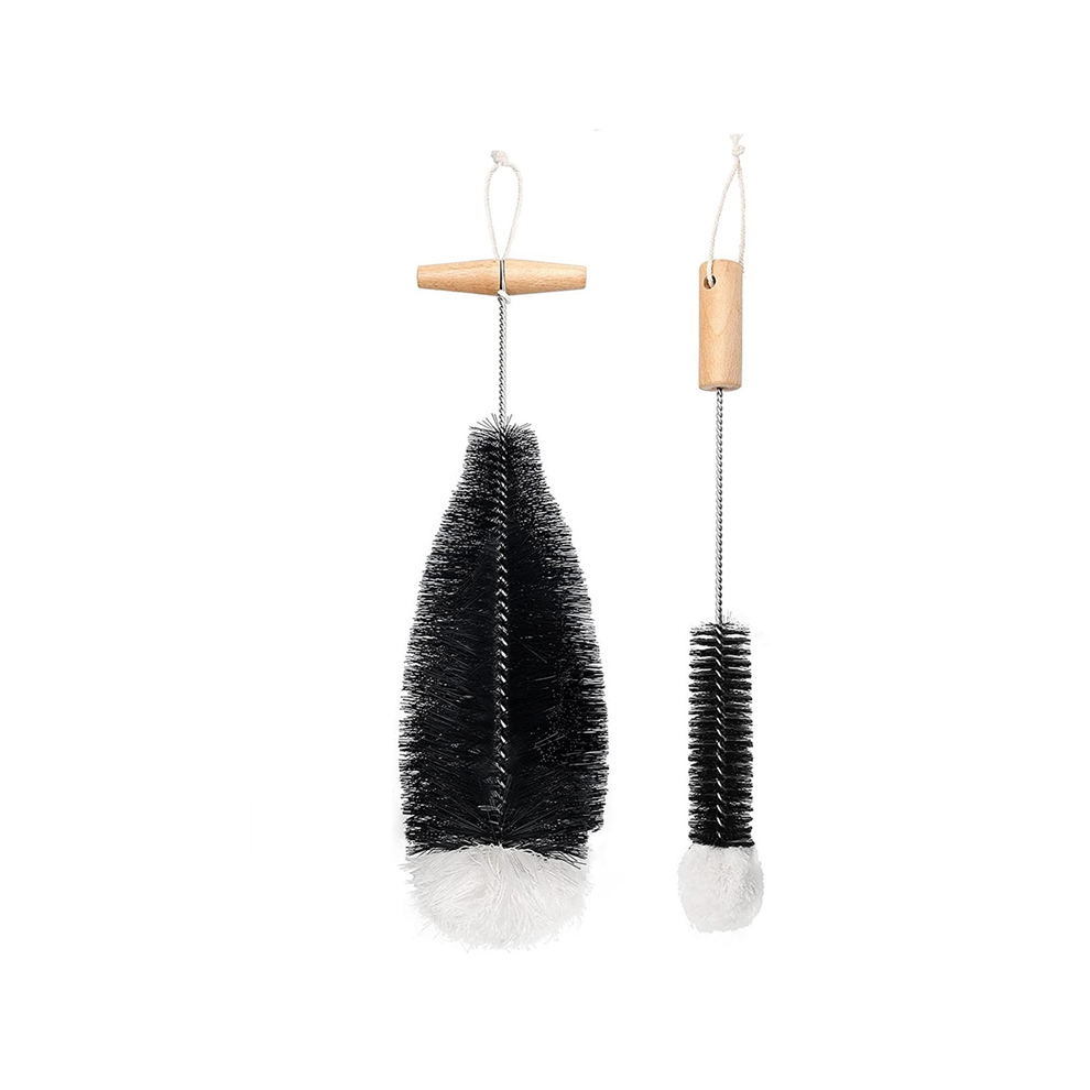 Wukemaoyi Bottle Brush Pack of 2, Nylon Bristles, Wooden Handle, Black, Compatible with Sodastream, Glass, Metal, Plastic Bottles