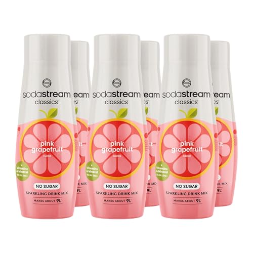 Sodastream Classics Pink Grapefruit Zero Sugar Syrup Drink Mix, Sugar Free Sodastream Syrup, Grapefruit Flavour, 6 x 440ml Multipack, Home Sparkling Water, Makes Approx. 54L