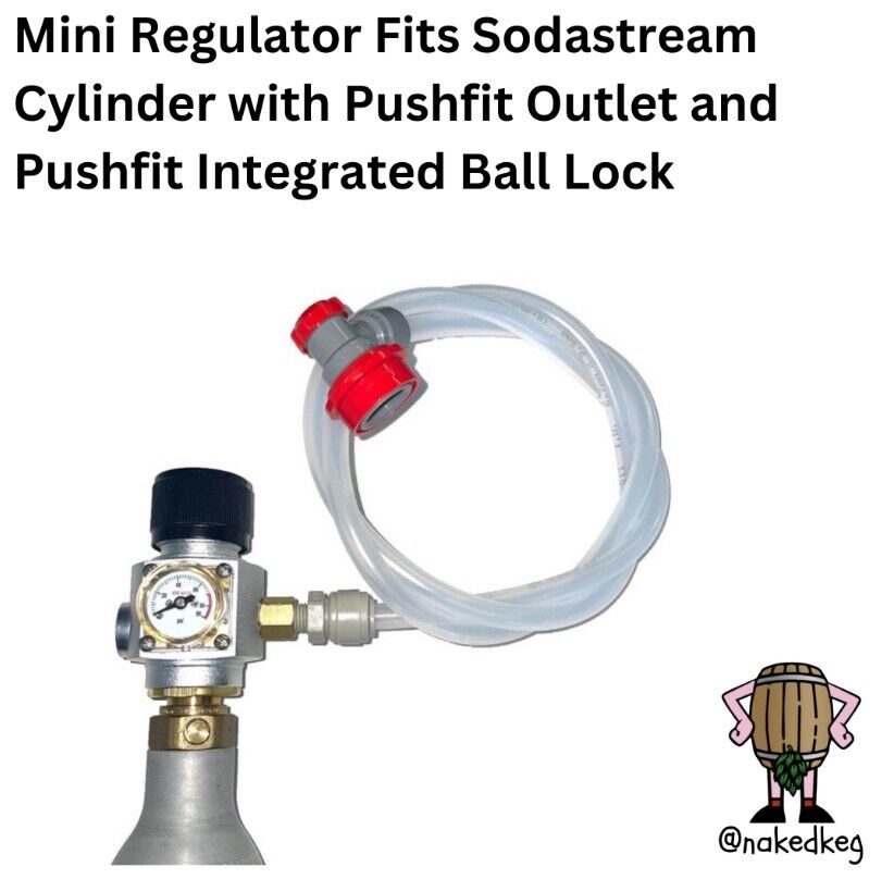 Regulator fits Sodastream Cylinder CO2 Pushfit Integrated Ball Lock MDP Gas Line