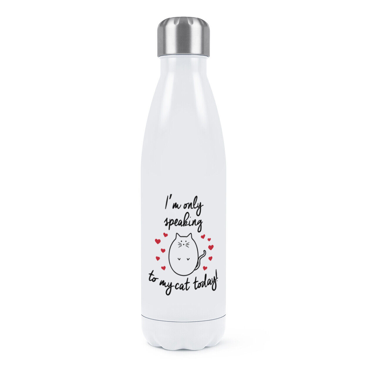 I'm Only Speaking To My Cat Today Double Wall Water Bottle Crazy Lady Funny