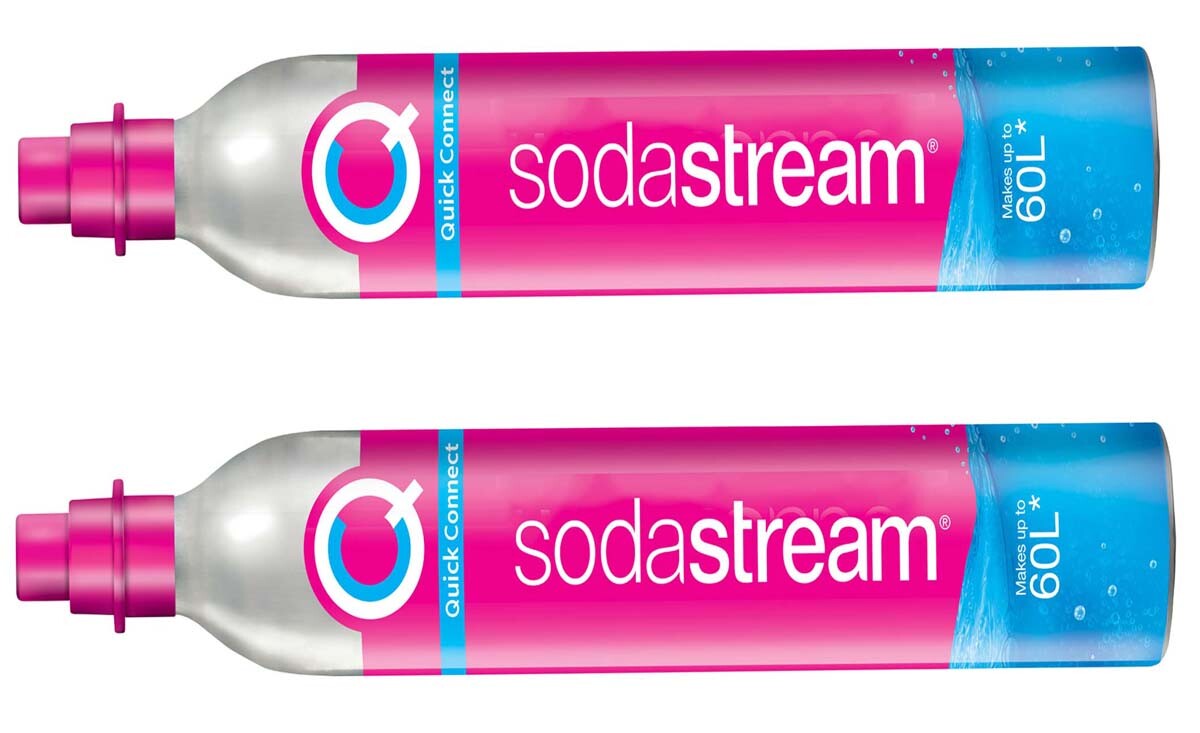 SodaStream - 2 x CO2 Cylinder for Sparkling Water Maker, Quick Connect Gas System, Makes 60 litres Fizzy Drinks, Compatible with Terra, Duo and Art, Reduce Plastic Waste, Pink (Pack of 2)