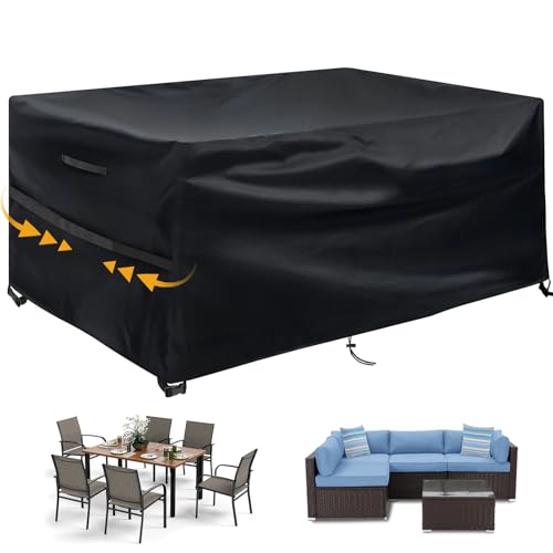 Beinear Garden Furniture Cover Waterproof Rectangular 300 x 250 x 100cm, Outdoor Patio Rattan Sofa Table and Chair Set Cover with Air Vent, Windproof Buckles, Anti UV/Tear 420D Oxford Fabric