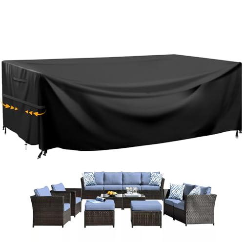 Garden Furniture Covers Waterproof, 350x260x90cm Oxford Fabric Outdoor Sofa Cover Windproof Sunproof with Handle Strap Drawstring Buckle for Garden Sofa, Table and Chair Set (Black, Rectangular)