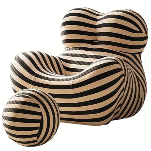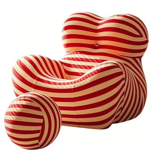 Inflatable Leisure Sofa Chair and Footstool Outdoor Folding Lounger Sofa Flocking Lazy Couch (Red)