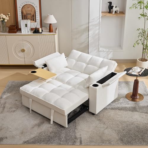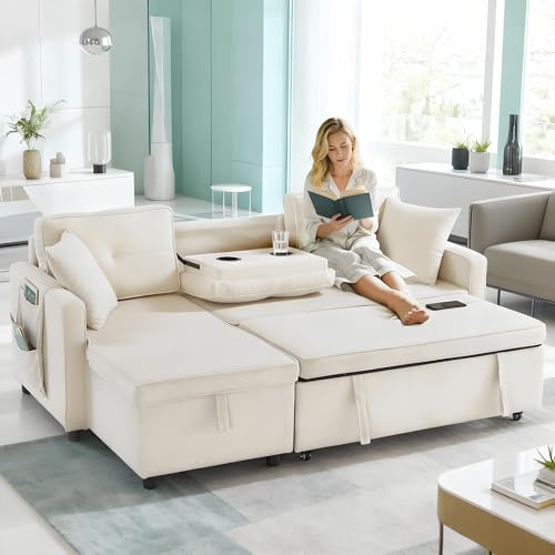 YODOLLA 2-Seater 3-in-1 Convertible Sofa Bed Sleeper, Pull Out Couch Bed with Adjustable Backrest, for Living-Beige