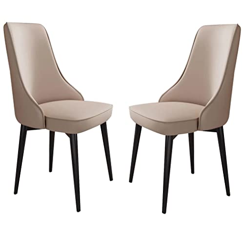 Widppsopt Dining Chairs Artificial Leather KitchenSet of 2 Bedroom Room Balcony Sofa Chair with Carbon Steel Legs(Khaki,Black Feet)