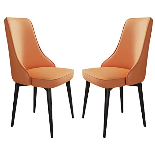 Widppsopt Dining Chairs Artificial Leather KitchenSet of 2 Bedroom Room Balcony Sofa Chair with Carbon Steel Legs(Orange,Black Feet)