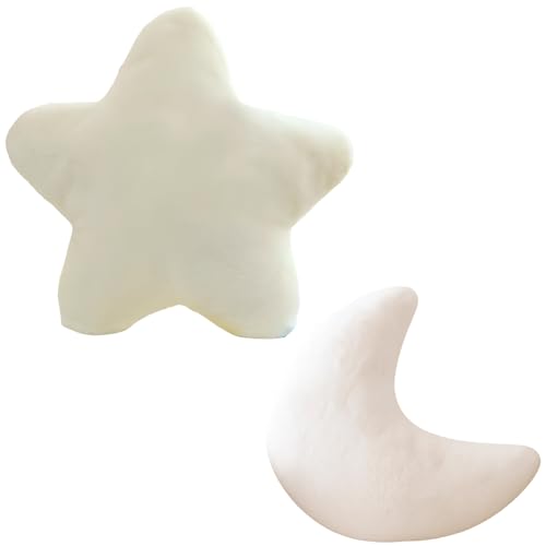 ROBGZMQW Plush Moon Pillow and Star Pillows, Soft Plush Cute Pillows for Home Decor, Cute Cushions for Sofa Bed and Car, for Kids and Adults, White, 30cm