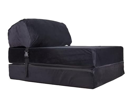 SAPPHIRE Folding Single Z Bed Mattress – 3-in-1 Guest Bed Chair, Fold Out Sofa Bed for Adults & Kids, Portable & Space Saving – Comfortable Foam Lounger Velet (black)