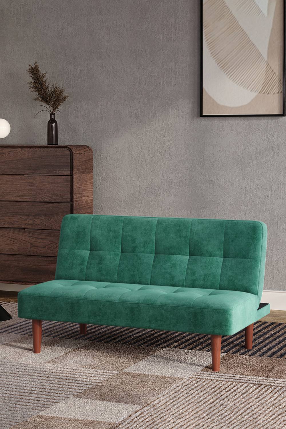 Living and Home 2-Seater Small Green Convertible Sofa with Wooden Legs Padded Sofa Bed for Kids